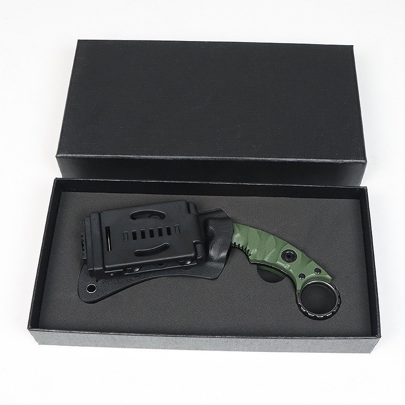 Karambit-Messer Camping Survival Outdoor-Messer Selbstverteidigung D2 Gerades Messer Hohe Hrte Taktisches Messer Integriertes Klauenmesser